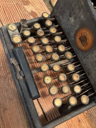 Antique early 1900s The Sun typewriter. Priced well below any other sold comps I could find, but didn’t find many because these are rare! Perfect petite size great for decorating. Would look great with fall and Halloween decor!!