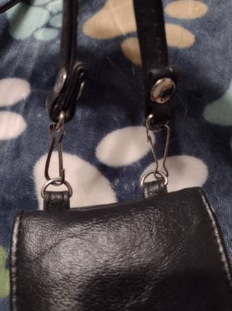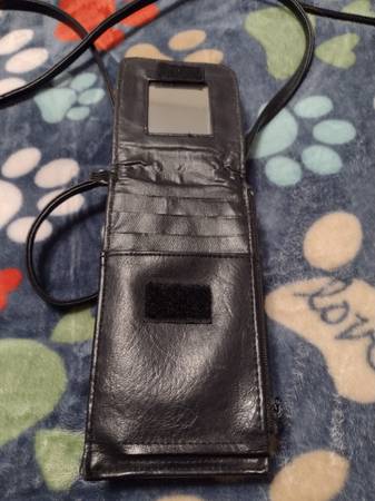 Gently used, no rips or tears. Handle clips on & off. Zipper pocket for change/cash. Section for cards with a mirror. Outer pocket will fit a small phone or your glasses. NE Norman cash pick up.
