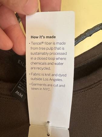 Wonderful Eileen Fisher cozy brushed Terry tunic top- So soft with a brushed fleecy interior for a cozier feel. Knit in the US with sustainable Tencel™ Lyocell. EF size Medium which runs larger so will also fit a Large.