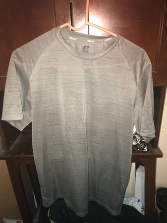 PAIR OF RUSSELL ATHLETIC SHORT SLEEVE 100% POLYESTER MENS T-SHIRTS LARGE IN GOOD CONDITION SELLING BOTH FIRM FOR $10