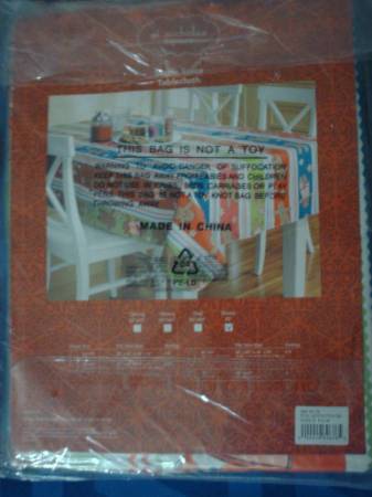 St. Nicholas Square Sugar Spice Gingerbread Multi 70" Round Vinyl Tablecloth, NEW, 15.00.