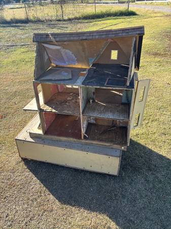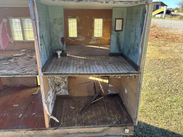 Needs work!! The roof isn’t currently attached. A lot of loose parts. Needs new wallpaper and lots of love. Will be so pretty when finished! Comes with everything in the pics including the stand.